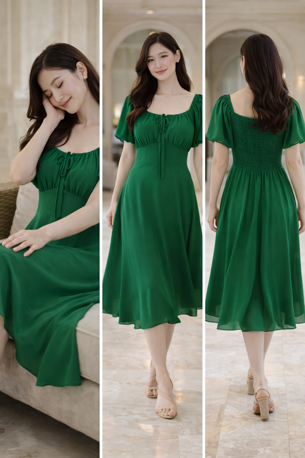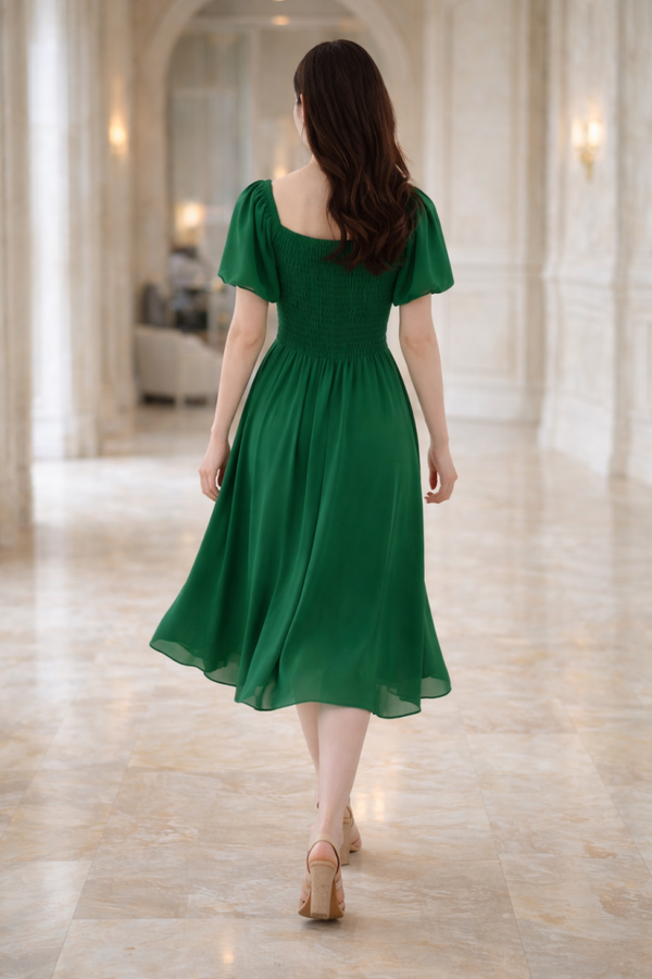 TV17 – Elegant Green Square Neck Puff Sleeve Dress